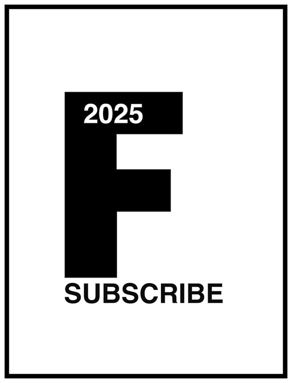 This subscription announces F Magazine’s shift to a quarterly publication with an expanded editorial structure: beginning with F issue 13: OBJECTIVITY (May 2025) and continuing through issue 16, the magazine incorporates regional co-editors based throughout the U.S., initially Baltimore, Dallas, Houston, Los Angeles, and New York. The second in this quarterly gesture, F issue 14: DIRECTORY (September 2025) will ship mid-September.
